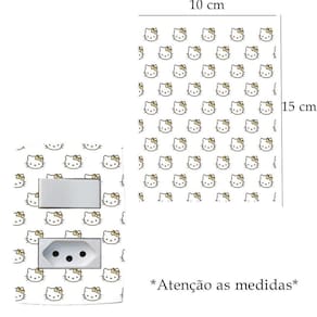 Adesivo de interruptor hello kitty mod05 Atenção as medidas Os adesivos decorativos são produzidos com material de alta qualidade. As imagens anunciadas são ilustrativas Tamanho do adesivo O adesivo da foto parece grande Então atenção: O modelo que está na foto não se refere ao tamanho do adesivo anunciado. deixamos o adesivo grande para que você possa visualizar melhor o produto que está comprando Material Vinil adesivo. É só destacar e colar Nossos adesivos são específicos para superfícies lisas, por isso se adequam a paredes, vidros, madeiras e demais superfícies sem texturas. Importante lembrar de conferir que o local para aplicação está devidamente limpo, sem poeiras, gorduras ou demais resíduos. Todos os nossos produtos são enviados com manual de instruções e dicas para aplicação. As imagens anunciadas são ilustrativas Pode haver variações na cor de acordo com as configurações do seu monitor. Confira todas as informações como medidas e quantidade na descrição do produto.