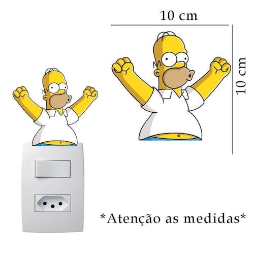 Adesivo de interruptor homer mod05 Atenção as medidas Os adesivos decorativos são produzidos com material de alta qualidade. As imagens anunciadas são ilustrativas Tamanho do adesivo O adesivo da foto parece grande Então atenção: O modelo que está na foto não se refere ao tamanho do adesivo anunciado. deixamos o adesivo grande para que você possa visualizar melhor o produto que está comprando Material Vinil adesivo. É só destacar e colar Nossos adesivos são específicos para superfícies lisas, por isso se adequam a paredes, vidros, madeiras e demais superfícies sem texturas. Importante lembrar de conferir que o local para aplicação está devidamente limpo, sem poeiras, gorduras ou demais resíduos. Todos os nossos produtos são enviados com manual de instruções e dicas para aplicação. As imagens anunciadas são ilustrativas Pode haver variações na cor de acordo com as configurações do seu monitor. Confira todas as informações como medidas e quantidade na descrição do produto. Marca: Lojinha Da Luc
