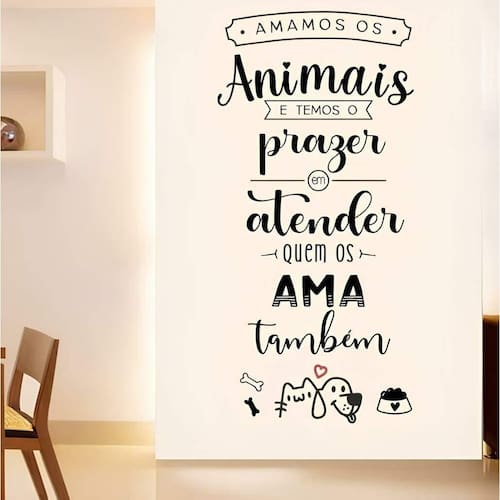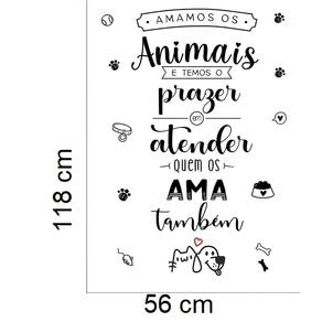 Adesivo de parede amamos os animais Medida: 56 x 118 cm As imagens anunciadas são ilustrativas Tamanho do adesivo O adesivo da foto parece grande