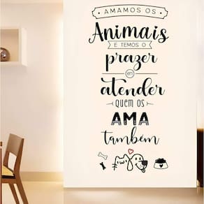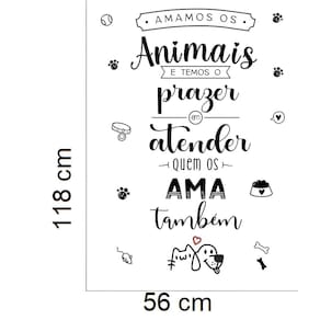 Adesivo de parede amamos os animais Medida: 56 x 118 cm As imagens anunciadas são ilustrativas Tamanho do adesivo O adesivo da foto parece grande