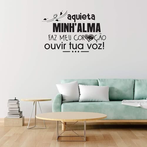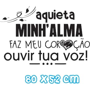 Adesivo de parede aquieta meu coração Medida: 80 x 52 cm As imagens anunciadas são ilustrativas Tamanho do adesivo O adesivo da foto parece grande Então atenção: O modelo que está na foto não se refere ao tamanho do adesivo anunciado. deixamos o adesivo grande para que você possa visualizar melhor o produto que está comprando Vantagens: - já vai recortado - fácil aplicação e sem sujeira, não precisa de cola. - acompanha manual impresso. - renovação do ambiente. É o fim das paredes brancas, sem vida Onde aplicar Em qualquer superfície lisa. Onde não aplicar Paredes úmidas, superfícies porosas, com relevo, com texturas, irregularidades ou com infiltrações. Local para aplicação: aplique onde sua imaginação mandar paredes, móveis, revestimentos, azulejos, tetos, janelas, portas, vitrines, vidraças, , carros, notebook, banheiro, geladeira e muito mais. Marca: Não Informado