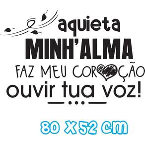 Adesivo de parede aquieta meu coração Medida: 80 x 52 cm As imagens anunciadas são ilustrativas Tamanho do adesivo O adesivo da foto parece grande Então atenção: O modelo que está na foto não se refere ao tamanho do adesivo anunciado. deixamos o adesivo grande para que você possa visualizar melhor o produto que está comprando Vantagens: - já vai recortado - fácil aplicação e sem sujeira, não precisa de cola. - acompanha manual impresso. - renovação do ambiente. É o fim das paredes brancas, sem vida Onde aplicar Em qualquer superfície lisa. Onde não aplicar Paredes úmidas, superfícies porosas, com relevo, com texturas, irregularidades ou com infiltrações. Local para aplicação: aplique onde sua imaginação mandar paredes, móveis, revestimentos, azulejos, tetos, janelas, portas, vitrines, vidraças, , carros, notebook, banheiro, geladeira e muito mais. Marca: Não Informado