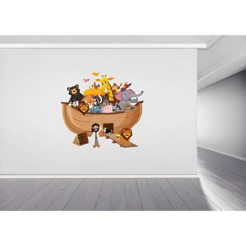 Adesivo de parede arca de noé mod01 Medida: 70 x 64 cm As imagens anunciadas são ilustrativas Tamanho do adesivo O adesivo da foto parece grande