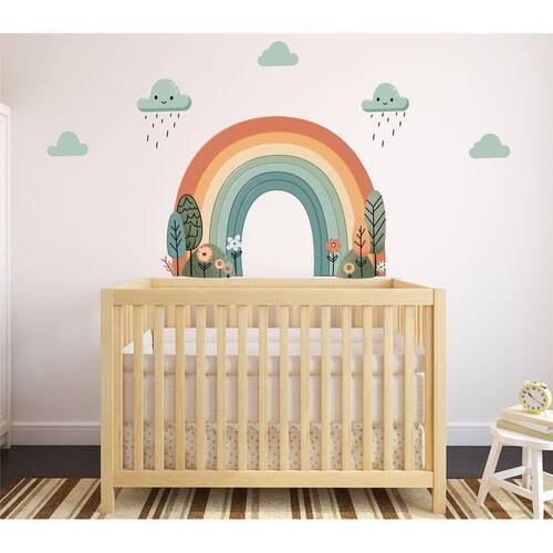 Adesivo de Parede Arco Iris Árvores e Jardim Boho Adesivo de Parede Arco Iris Árvores e Jardim Boho