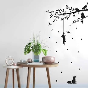 Adesivo de parede arvore e gato Medida: 52 x 70 cm As imagens anunciadas são ilustrativas Tamanho do adesivo O adesivo da foto parece grande Então atenção: O modelo que está na foto não se refere ao tamanho do adesivo anunciado. deixamos o adesivo grande para que você possa visualizar melhor o produto que está comprando