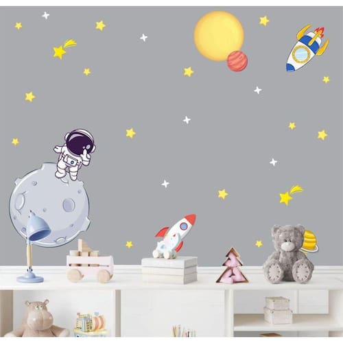 Adesivo de Parede Astronauta na Lua Planetas e Foguetes Transforme sua casa em um oásis de estilo e personalidade com os nossos incríveis adesivos de parede. Se você está buscando uma maneira fácil e econômica de renovar o ambiente sem obras ou sujeira, nossos adesivos são a solução perfeita. Com uma variedade de designs modernos e exclusivos, criamos um produto que combina qualidade, praticidade e beleza para transformar qualquer espaço em um cenário encantador.