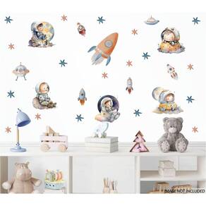 Adesivo de Parede Astronautas Bebês Cute no Espaço Os Adesivos de Parede da Colakoala são ideais para decorar o Berçário ou quartinho do seu bebê, a sala de estar, a cozinha ou cantinho do café, Também cai muito bem no Espaço Kids, além de ser muito fácil de instalar. Essa é uma compra que você não irá se arrepender Adesivo de Parede Astronautas Bebês Cute no Espaço Medida: Contém 05 Astronautas medindo Aproximadamente 30cm cada01 Foguete de 35cm04 Foguetes de 20cm cada02 Disco voadores de 20cm cada50 estrelas para espalhar pela parede Adesivo de Vinil auto-colante com recorte Garantia de 3 meses e durabilidade de 5 anos para uso interno e 2 anos para uso externo Nossos adesivos são de fácil instalação, não havendo a necessidade de experiência ou habilidades especiais É só destacar e colar. Acompanha Manual de instalação Sinta o prazer de fazer você mesmo de forma profissional e com toque único e pessoal. Deixe seu cantinho único como você. Seja Bem vindo/a e boas compras