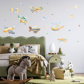 Adesivo Avião Helicóptero Dirigível Nave Céu Aquarela