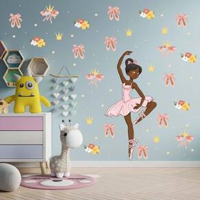 Adesivo De Parede Decorativo Bailarina Balé Ballet MEDIDAS -Kit 1 folha com: * 1 bailarina 30x60 cm * 4 flores com laço 14,5x14 cm * 6 coroas 6,5x6,7 cm * 9 sapatilhas 10,5x11,5 cm * 6 flores 10,8x7,2 cm * 20 flores pequenas 2,5x2,5 cm * 27 pontinhos brancos 0,8x0,8 cm MATERIAL -adesivo vinílico fosco não tóxico TIPO DE IMPRESSÃO - Impressão em alta resolução livre de imperfeições. OBSERVAÇÕES Podem ser colocados no quarto das crianças, na sala de estudos, no escritório, na geladeira, na sala de brinquedos, no box do banheiro ou em muitos outros lugares. A aplicação é muito simples, é só tirar o adesivo e colar como quiser. Os Adesivos já seguem com os recortes para agilizar e facilitar sua instalação, cortes feitos com alta precisão no momento da impressão para garantir a melhor qualidade. Podem ser aplicados em paredes lisas, com tinta acetinada, latex e acrílica, móveis, espelhos, portas, box de banheiro, livres de poeira ou pó de gesso. Não aplicar sobre tinta fresca, tinta magnética, superfícies irregulares ou texturizadas, locais com infiltrações. * Imagem ambiente ilustrativa PRODUTO NÃO TOXICO