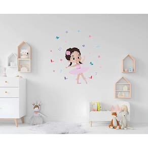 Adesivo de parede bailarina com notas musicais mod01 Medida: 50 x 52 cm As imagens anunciadas são ilustrativas Tamanho do adesivo O adesivo da foto parece grande