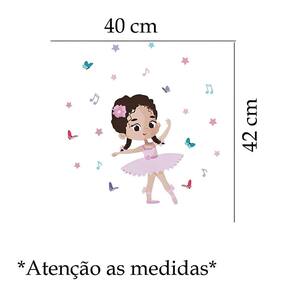 Adesivo de parede bailarina com notas musicais mod01 Medida: 40 x 42 cm As imagens anunciadas são ilustrativas Tamanho do adesivo O adesivo da foto parece grande