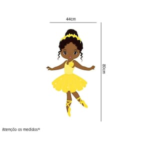 Adesivo de parede bailarina roupa amarela mod03 Medida: 44 x 80 cm As imagens anunciadas são ilustrativas Tamanho do adesivo O adesivo da foto parece grande Então atenção: O modelo que está na foto não se refere ao tamanho do adesivo anunciado. deixamos o adesivo grande para que você possa visualizar melhor o produto que está comprando Vantagens: - já vai recortado - fácil aplicação e sem sujeira, não precisa de cola. - acompanha manual impresso. - renovação do ambiente. É o fim das paredes brancas, sem vida Onde aplicar Em qualquer superfície lisa. Onde não aplicar Paredes úmidas, superfícies porosas, com relevo, com texturas, irregularidades ou com infiltrações. Local para aplicação: aplique onde sua imaginação mandar paredes, móveis, revestimentos, azulejos, tetos, janelas, portas, vitrines, vidraças, , carros, notebook, banheiro, geladeira e muito mais. Marca: Lojinha Da Luc Adesivos Ean: 8001250002853