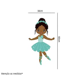 Adesivo de parede bailarina roupa verde tiffany Medida: 33 x 60 cm As imagens anunciadas são ilustrativas Tamanho do adesivo O adesivo da foto parece grande