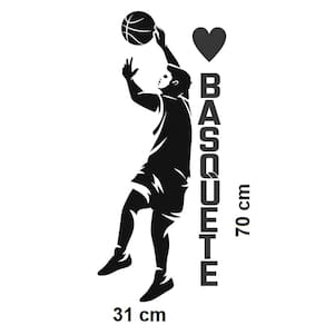 Adesivo de parede basquete Medida: 31 x 70 cm As imagens anunciadas são ilustrativas Tamanho do adesivo O adesivo da foto parece grande Então atenção: O modelo que está na foto não se refere ao tamanho do adesivo anunciado. deixamos o adesivo grande para que você possa visualizar melhor o produto que está comprando