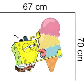 Adesivo de parede bob tomando sorvete Medida: 67 x 70 cm As imagens anunciadas são ilustrativas Tamanho do adesivo O adesivo da foto parece grande