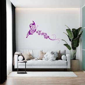 Adesivo de parede borboleta floral Medida: 120 x 77 cm As imagens anunciadas são ilustrativas Tamanho do adesivo O adesivo da foto parece grande Então atenção: O modelo que está na foto não se refere ao tamanho do adesivo anunciado. deixamos o adesivo grande para que você possa visualizar melhor o produto que está comprando