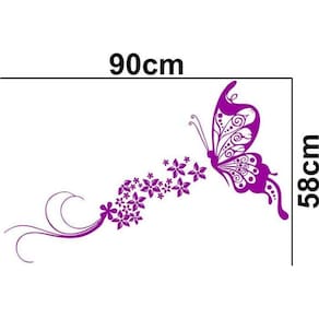 Adesivo de parede borboleta floral Medida: 90 x 58 cm As imagens anunciadas são ilustrativas Tamanho do adesivo O adesivo da foto parece grande Então atenção: O modelo que está na foto não se refere ao tamanho do adesivo anunciado. deixamos o adesivo grande para que você possa visualizar melhor o produto que está comprando