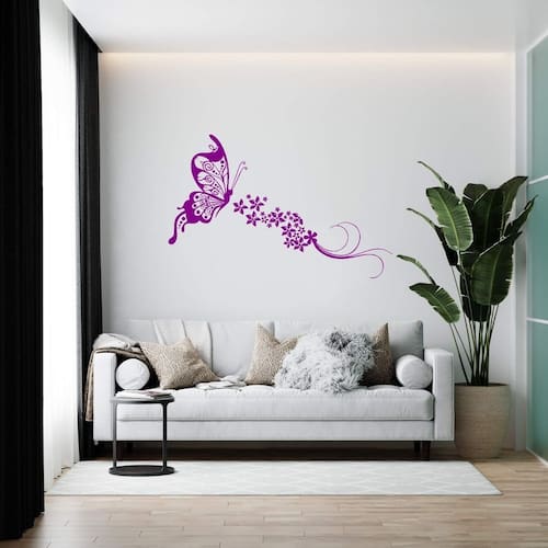 Adesivo de parede borboleta floral Medida: 90 x 58 cm As imagens anunciadas são ilustrativas Tamanho do adesivo O adesivo da foto parece grande Então atenção: O modelo que está na foto não se refere ao tamanho do adesivo anunciado. deixamos o adesivo grande para que você possa visualizar melhor o produto que está comprando