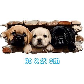 Adesivo de parede buraco 3d cachorros Medida: 60 x 24 cm As imagens anunciadas são ilustrativas Tamanho do adesivo O adesivo da foto parece grande Então atenção: O modelo que está na foto não se refere ao tamanho do adesivo anunciado. deixamos o adesivo grande para que você possa visualizar melhor o produto que está comprando Vantagens: - já vai recortado - fácil aplicação e sem sujeira, não precisa de cola. - acompanha manual impresso. - renovação do ambiente. É o fim das paredes brancas, sem vida Onde aplicar Em qualquer superfície lisa. Onde não aplicar Paredes úmidas, superfícies porosas, com relevo, com texturas, irregularidades ou com infiltrações. Local para aplicação: aplique onde sua imaginação mandar paredes, móveis, revestimentos, azulejos, tetos, janelas, portas, vitrines, vidraças, , carros, notebook, banheiro, geladeira e muito mais.