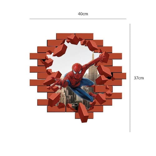 Adesivo de parede buraco falso homem aranha mod08 Medida: 40 x 37 cm Atenção as medidas Os adesivos decorativos são produzidos com material de alta qualidade. As imagens anunciadas são ilustrativas