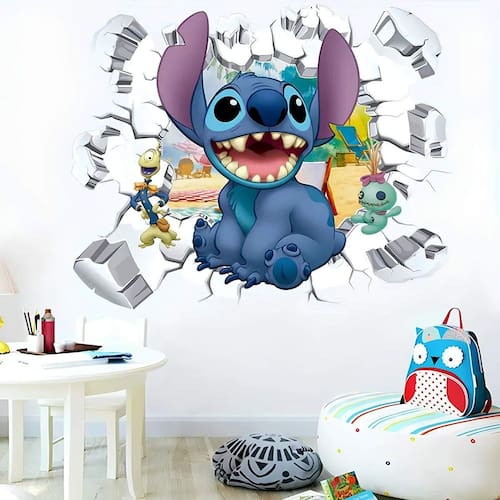 Adesivo de parede buraco falso stitch Medida: 80 x 70 cm As imagens anunciadas são ilustrativas Tamanho do adesivo O adesivo da foto parece grande