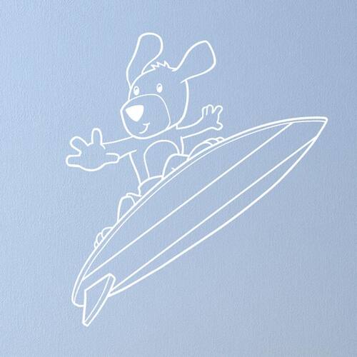 Adesivo de Parede - Cachorro Surfista - Os Adesivos da Allodi foram feitos para transformar e dar mais vida aos ambientes, podem ser colados em paredes, em madeira ou em vidro, dão uma cara nova ao seu ambiente, seja ele sua sala, quarto, cozinha, varanda, hall, ou onde mais desejar, sem dor de cabeça e sem sujeira. - Fabricados em vinil adesivo de alta qualidade, garantindo maior qualidade e beleza no resultado final. - Adesivo autocolante de fácil instalação, não recomendado para aplicação em parede com textura, com umidade ou pintada com tinta magnetica.
