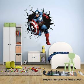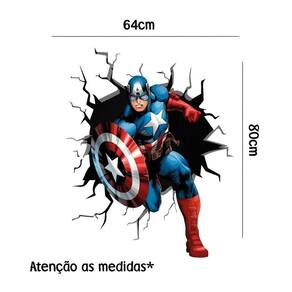 Adesivo de parede capitão américa Medida: 64 x 80 cm As imagens anunciadas são ilustrativas Tamanho do adesivo O adesivo da foto parece grande