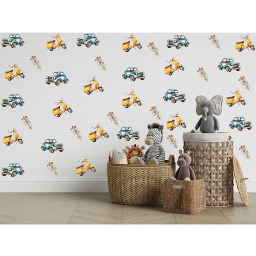 Adesivo de Parede Carrinho Motoneta Scooter e Placa Aquarela Adesivo de Parede Carrinho Motoneta Scooter e Placa Aquarela