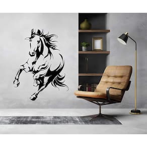 Adesivo de parede cavalo mod01 Medida: 30 x 40 cm As imagens anunciadas são ilustrativas Tamanho do adesivo O adesivo da foto parece grande Então atenção: O modelo que está na foto não se refere ao tamanho do adesivo anunciado. deixamos o adesivo grande para que você possa visualizar melhor o produto que está comprando