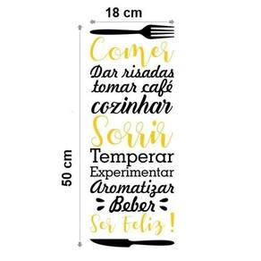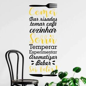 Adesivo de parede comer e sorrir Medida: 18 x 50 cm As imagens anunciadas são ilustrativas Tamanho do adesivo O adesivo da foto parece grande Então atenção: O modelo que está na foto não se refere ao tamanho do adesivo anunciado. deixamos o adesivo grande para que você possa visualizar melhor o produto que está comprando
