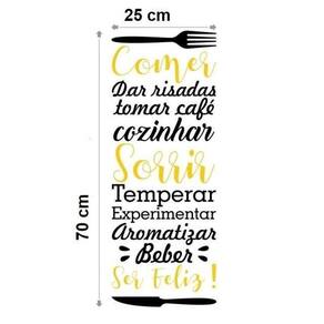 Adesivo de parede comer e sorrir Medida: 25 x 70 cm As imagens anunciadas são ilustrativas Tamanho do adesivo O adesivo da foto parece grande Então atenção: O modelo que está na foto não se refere ao tamanho do adesivo anunciado. deixamos o adesivo grande para que você possa visualizar melhor o produto que está comprando