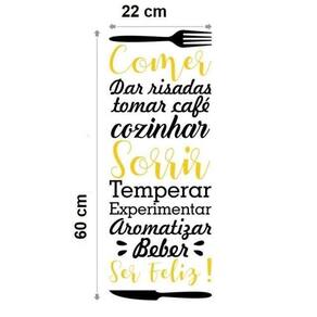 Adesivo de parede comer e sorrir Medida: 22 x 60 cm As imagens anunciadas são ilustrativas Tamanho do adesivo O adesivo da foto parece grande Então atenção: O modelo que está na foto não se refere ao tamanho do adesivo anunciado. deixamos o adesivo grande para que você possa visualizar melhor o produto que está comprando
