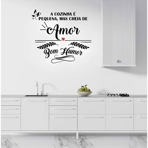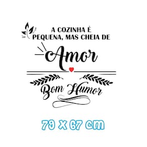 Adesivo de parede cozinhar com bom humor Medida: 79 x 67 cm As imagens anunciadas são ilustrativas Tamanho do adesivo O adesivo da foto parece grande