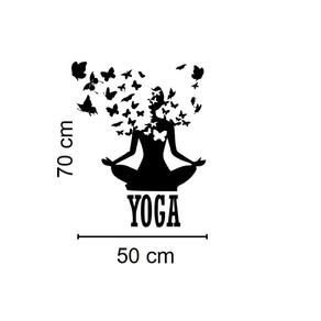 Adesivo de parede de yoga meditação com borboletas Medida: 50 x 70 cm As imagens anunciadas são ilustrativas Tamanho do adesivo O adesivo da foto parece grande