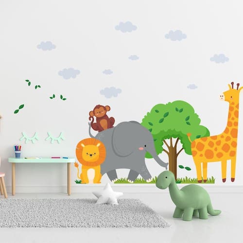 Adesivo De Parede Decorativo Infantil Safari na Savana MEDIDAS -Kit 1 folha de 60 cm x 127 cm com itens relacionados a Safari: 1 Girafa de 37x61 cm 1 Macaco de 10x11 cm 1 Elefante de 40x34 cm 1 Leão de 16x24 cm 1 Árvore de 44x50 cm 1 grama de 04x60 cm 11 nuvens, 4 de 3x5 cm, 3 de 5x9 cm, 2 de 4x8 cm e 2 de 1,5x3 cm 14 folhagens diferentes, 5 de 1,7x6 cm, 7 de 2x4 cm e 2 de 2,5x11 cm. MATERIAL -adesivo vinílico fosco não tóxico TIPO DE IMPRESSÃO - Impressão em alta resolução livre de imperfeições. OBSERVAÇÕES Podem ser colocados no quarto das crianças, na sala de estudos, no escritório, na geladeira, na sala de brinquedos, no box do banheiro ou em muitos outros lugares. A aplicação é muito simples, é só tirar o adesivo e colar como quiser. Os Adesivos já seguem com os recortes para agilizar e facilitar sua instalação, cortes feitos com alta precisão no momento da impressão para garantir a melhor qualidade. Podem ser aplicados em paredes lisas, com tinta acetinada, latex e acrílica, móveis, espelhos, portas, box de banheiro, livres de poeira ou pó de gesso. Não aplicar sobre tinta fresca, tinta magnética, superfícies irregulares ou texturizadas, locais com infiltrações. * Imagem ambiente ilustrativa PRODUTO NÃO TOXICO