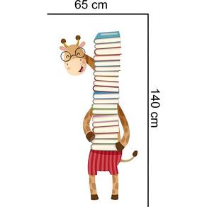 Adesivo de parede dona girafa e seus livros Medida: 65 x 140 cm As imagens anunciadas são ilustrativas Tamanho do adesivo O adesivo da foto parece grande