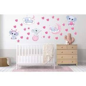 Adesivo de parede elefantinho Medida: 64 x 70 cm As imagens anunciadas são ilustrativas Tamanho do adesivo O adesivo da foto parece grande Então atenção: O modelo que está na foto não se refere ao tamanho do adesivo anunciado. deixamos o adesivo grande para que você possa visualizar melhor o produto que está comprando