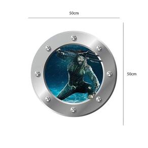 Adesivo de parede escotilha aquaman Medida: 50 x 50 cm As imagens anunciadas são ilustrativas Tamanho do adesivo O adesivo da foto parece grande