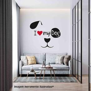 Adesivo de parede eu amo cachorro Medida: 51 x 44 cm As imagens anunciadas são ilustrativas Tamanho do adesivo O adesivo da foto parece grande Então atenção: O modelo que está na foto não se refere ao tamanho do adesivo anunciado. deixamos o adesivo grande para que você possa visualizar melhor o produto que está comprando
