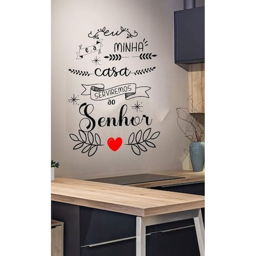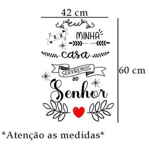 Adesivo de parede eu e minha casa serviremos ao senhor Medida: 42 x 60 cm As imagens anunciadas são ilustrativas Tamanho do adesivo O adesivo da foto parece grande