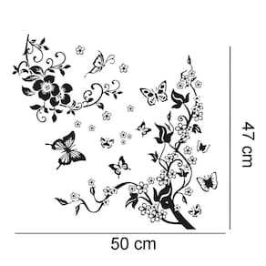 Adesivo de parede florais mod02 Medida: 50 x 47 cm As imagens anunciadas são ilustrativas Tamanho do adesivo O adesivo da foto parece grande Então atenção: O modelo que está na foto não se refere ao tamanho do adesivo anunciado. deixamos o adesivo grande para que você possa visualizar melhor o produto que está comprando