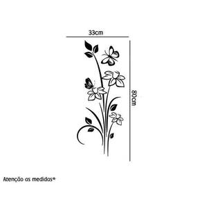 Adesivo de parede floral Medida: 33 x 80 cm As imagens anunciadas são ilustrativas Tamanho do adesivo O adesivo da foto parece grande Então atenção: O modelo que está na foto não se refere ao tamanho do adesivo anunciado. deixamos o adesivo grande para que você possa visualizar melhor o produto que está comprando
