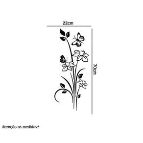 Adesivo de parede floral Medida: 22 x 70 cm As imagens anunciadas são ilustrativas Tamanho do adesivo O adesivo da foto parece grande Então atenção: O modelo que está na foto não se refere ao tamanho do adesivo anunciado. deixamos o adesivo grande para que você possa visualizar melhor o produto que está comprando