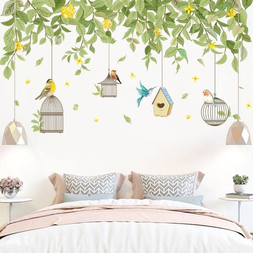 Adesivo de parede Flower Vine and Birdcage Home Decor 45x50cm