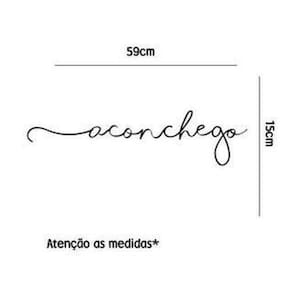 Adesivo de parede frase aconchego Medida: 59 x 15 cm As imagens anunciadas são ilustrativas Tamanho do adesivo O adesivo da foto parece grande Então atenção: O modelo que está na foto não se refere ao tamanho do adesivo anunciado. deixamos o adesivo grande para que você possa visualizar melhor o produto que está comprando