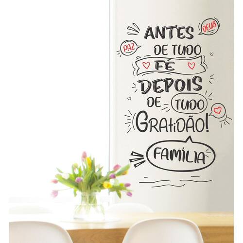 Renove a decoração da sua casa com o adesivo decorativo de parede Frase Antes De Tudo Fé. Com duas opções de cores, esse adesivo é perfeito para sala, quarto, cozinha, móveis, escritório, vidros de box, janelas, portas e muito mais.
