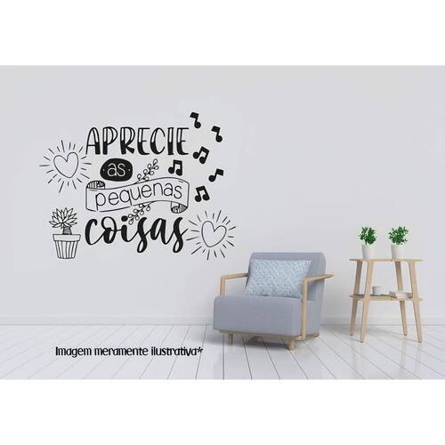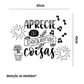 Adesivo de parede frase aprecie as pequenas coisas Medida: 60 x 45 cm As imagens anunciadas são ilustrativas Tamanho do adesivo O adesivo da foto parece grande