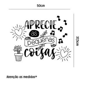 Adesivo de parede frase aprecie as pequenas coisas Medida: 50 x 38 cm As imagens anunciadas são ilustrativas Tamanho do adesivo O adesivo da foto parece grande