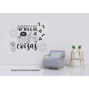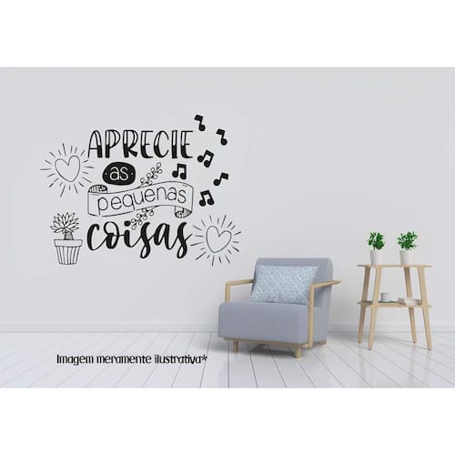 Adesivo de parede frase aprecie as pequenas coisas Medida: 50 x 38 cm As imagens anunciadas são ilustrativas Tamanho do adesivo O adesivo da foto parece grande