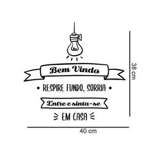 Adesivo de parede frase bem vindo mod02 Medidas: 40 x 38 cm Atenção as medidas Os adesivos decorativos são produzidos com material de alta qualidade. As imagens anunciadas são ilustrativas